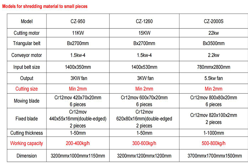 Suitable for old clotes,fiber,non-woven fabric,leather,metal,paper,plastic cutting and shredding.