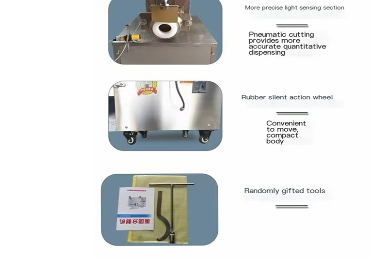 The dough ball divider machine can divide the whole dough into a number of small dough when the dough is kneaded.The dough is processed into a dosage by extrusion, conveying, shearing and spheronization. It is widely used in institutions, factories, mines, school canteens,and pasta processing units It has high transmission efficiency and compact structure;the size and weight of the agent are easily adjusted, which is convenient for customers to choose.